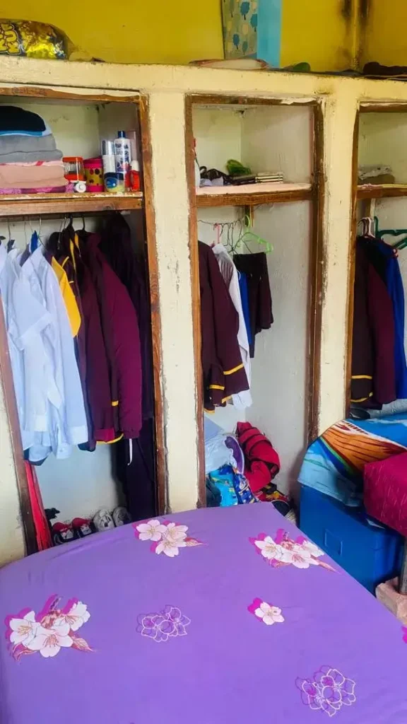 Each room is shared by three students, with Form 1 learners initially being placed together. They remain in the same room throughout their stay at the school until they reach Form 4.