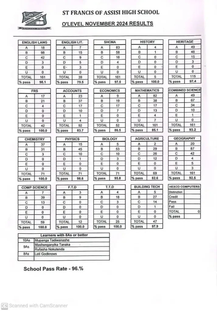 Ini kuSt Francis of Assisi kwakandiitira zvisingaiti,mwana wangu is an average student but she passed all the 13 subjects dzaaiita,diet iri nani,fees bhoo ,hakuzoshaikwiwo mamwe mahiccups