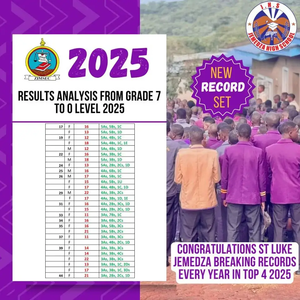 In a remarkable display of academic excellence, St Luke Jemedza attained a 95% pass rate at O-level.